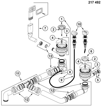 odtoková a přepadová armatura s prostorově úspornou trubkou