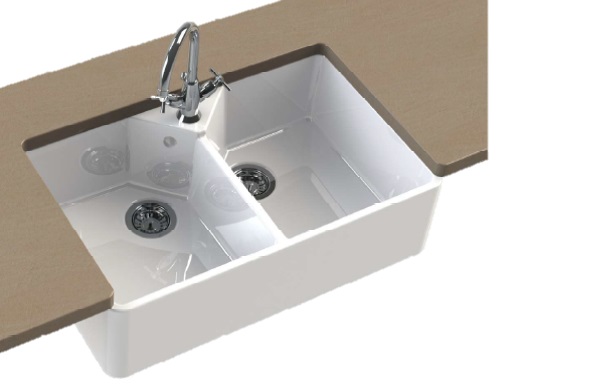 dřez nástavný VILLAE FARMHOUSE - dvoudřez keramika® PuraPlus® zářivě bílá bez excentru