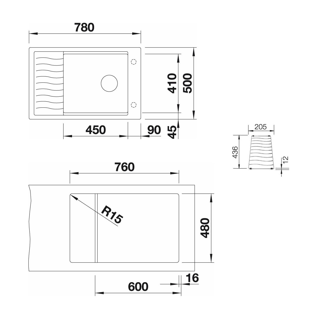 BLANCO 525883 ELON XL 6 S black SILGRANIT® PuraDur® InFino without eccentric