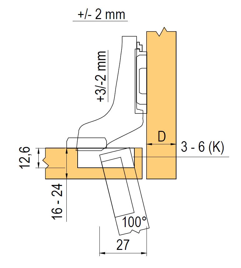 Zawias z kątem otwarcia 100°, miska Expando. Można kombinować z tłumieniem BLUMOTION do założenia po stronie zawiasu 973A0700 - 12386. podstawowe prowadniki: pozostałe viz. katalog Blum wkręt 173L6100 - 12306, euro 173L8100 - 12318, regulacja excentrem 173H7100 - 12340, expando 174E6100.01 - 12302.