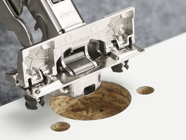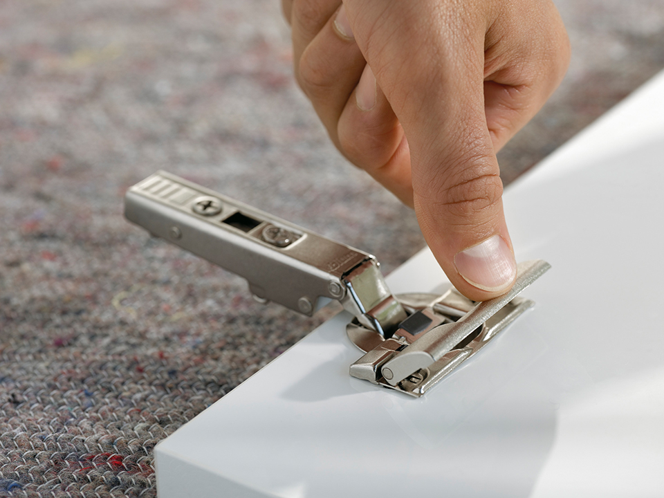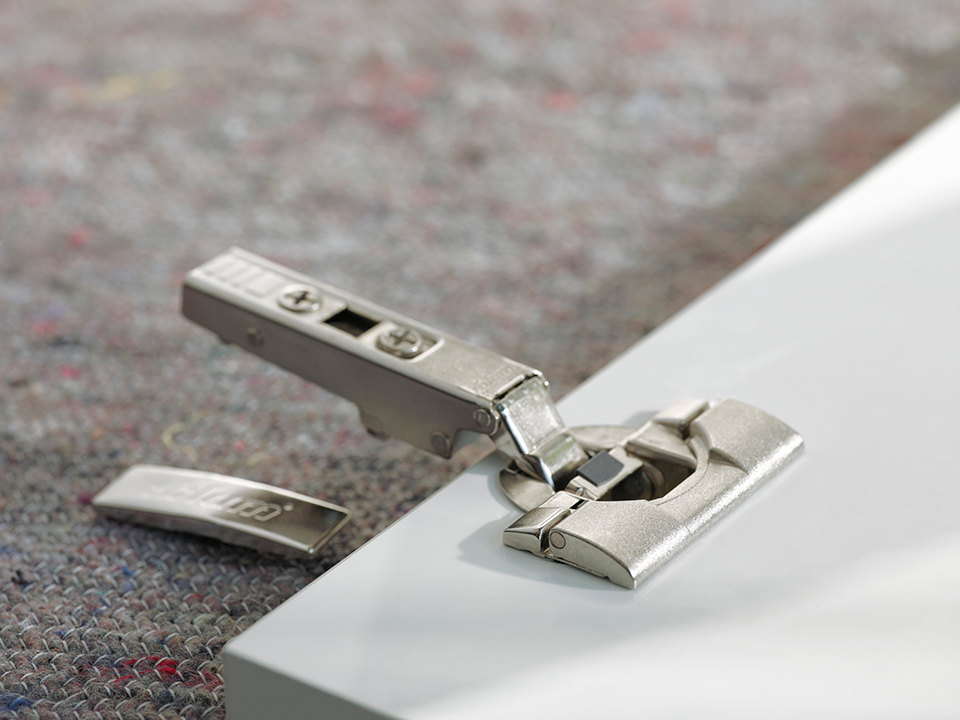 Zawias nakładany clip z wbudowanym tłumieniem Blumotion (możliwość dezaktywacji), do dużego nałożenia przy grubych ściankach korpusu – nałożenie do 20 mm, grubość frontu do 26 mm. Kąt otwarcia 110°. Wygodna regulacja nałożenia i głębokości na ramieniu. Regulacja wysokości na płytce montażowej. Beznarzędziowy montaż puszki Inserta.