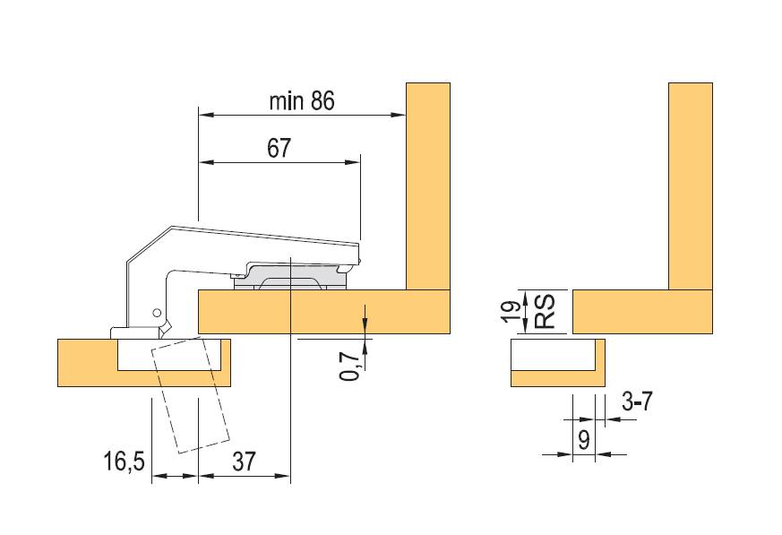 Wysokość płytki montażowej dobiera się w zależności od grubości boku korpusu, na którym płytka jest zamontowana: