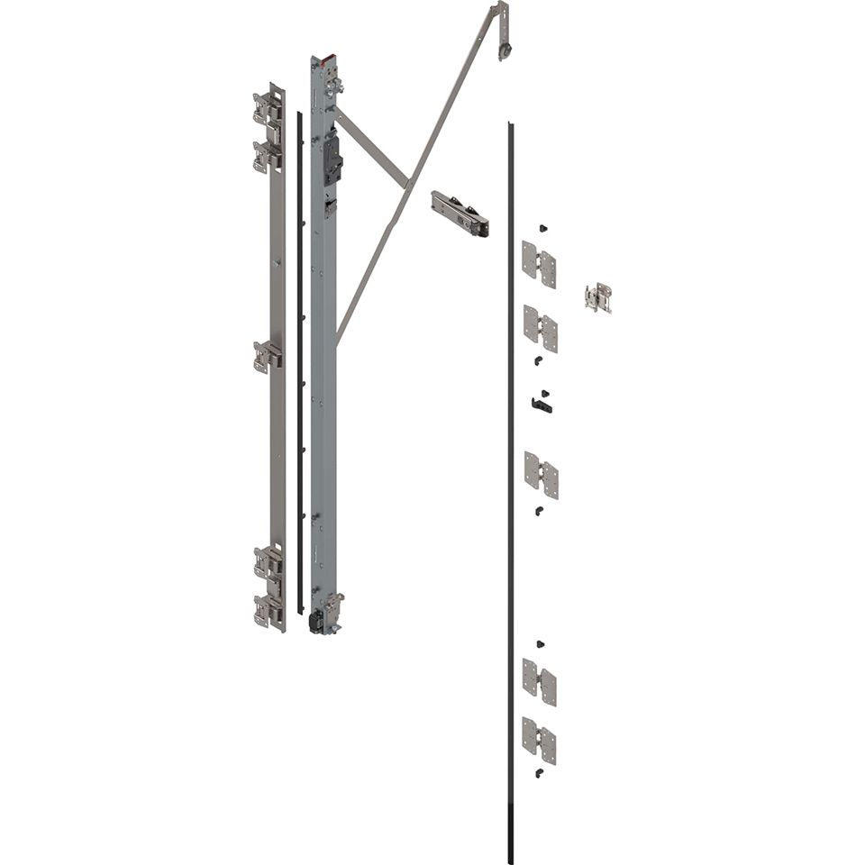 REVEGO Duo, Listwa synchronizacyjna zawiasów z TIP-ON do kieszeni o wysokości 2257 - 2406 mm, lewa. Długość: 2100 mm. Materiał: stal. Kolor/wykończenie: Ocynkowane. Sposób mocowania: bez narzędzi. Zakres artykułu: Zestaw.
