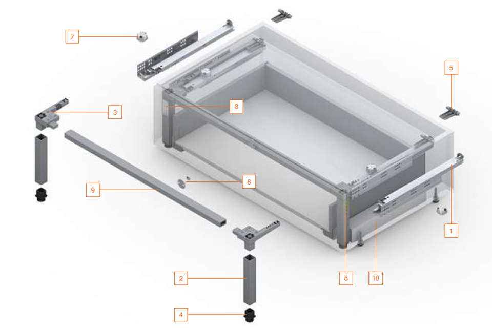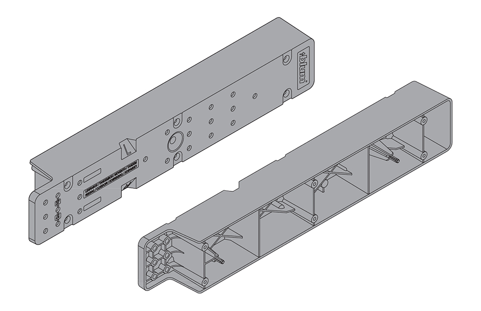 Listwa dystansowa do kompletu Space Step Do montażu prowadnic, pasuje do wszystkich systemów Box i prowadnic Blum. Funkcjonalność kompletu youtube Maksymalne obciażenie 150 kg* * Zatwierdzenie prawdziwego obciążenia mebli, które wyprodukowałeś za pomocą SPACE STEP musi być zapewnione przez producenta zgodnie z normą EN-14183. Fakt ten musi być podany na etykiecie producenta. Zalecany materiał: Do stopnia cokołowego zalecamy płytę warstwową (3 warstwy) o minimalnej grubości co najmniej 21 mm. Zalecenie dotyczące powierzchni stopnia: Powierzchnia stopnia musi być antypoślizgowa. W tym celu można zastosować matę antypoślizgową, która będzie bezpośrednio połączona z powierzchnią stopnia lub płytkę antypoślizgową. Umieszczenie etykiety: Norma EN-14183 zakłada widoczne umieszczenie obu dołączonych etykiet. Prowadnice dla SPACE STEP: Można stosować tylko prowadnice 30 kg lub 40 kg. Nośność dynamiczna wysuwu pod SPACE STEP wynosi 20 kg.