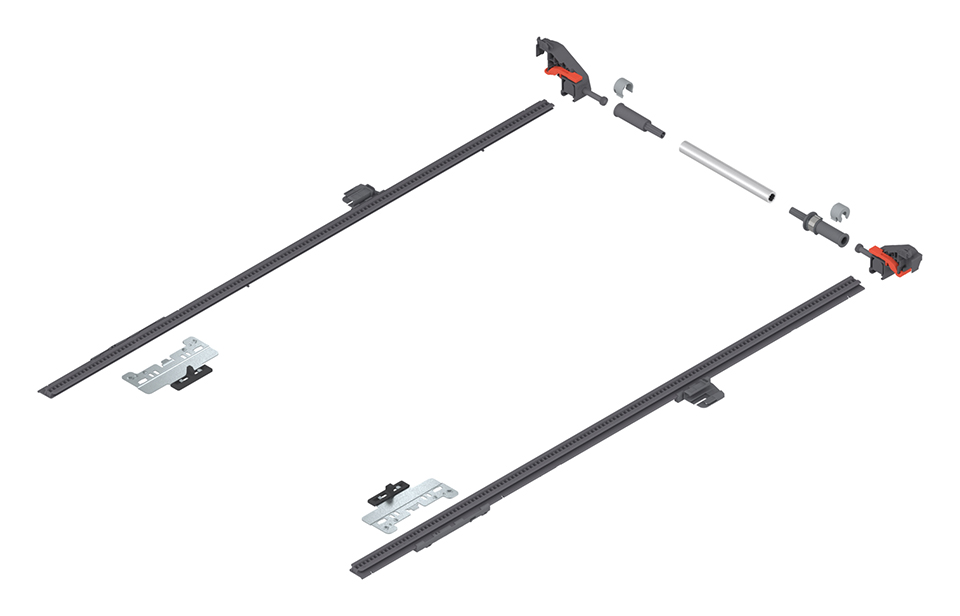 MERIVOBOX stabilizacja boczna do NL=650mm, do KB=1400mm, do skrócenia. Minimalna wymagana głębokość korpusu szafy w świetle NL+15 mm.