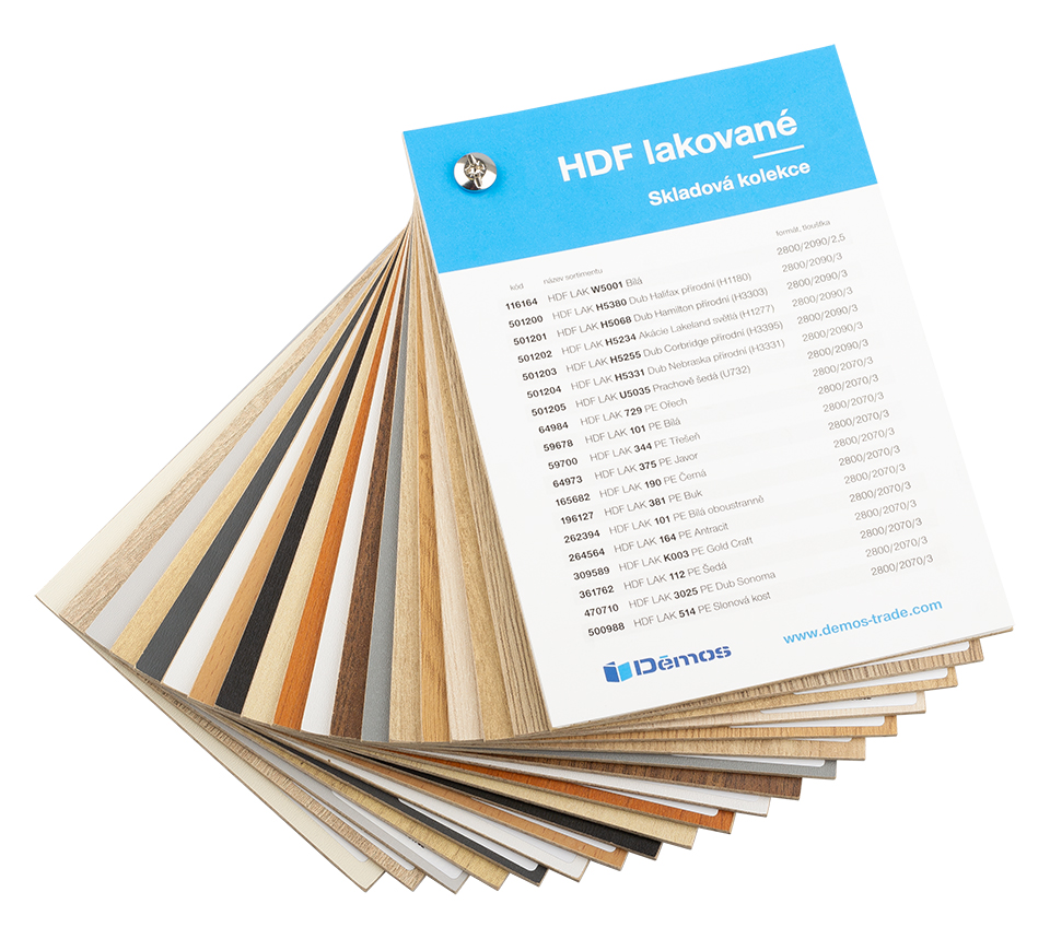 Wzornik HDF-LAK kolekcja Demos 19 dekorów.