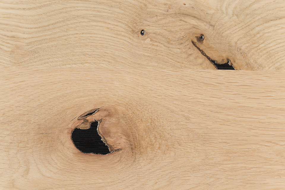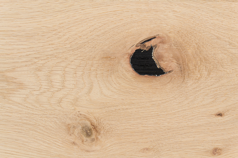 Dekor VITA je esencí přirozené autenticity. Využívá rustikální dubovou dýhu, která si zachovává své výrazné přirozené prvky – suky, praskliny i barevnou proměnlivost. Sesazení metodou MixMatch a pečlivý výběr radiálních i fládrových lamel vytváří živou a hlubokou texturu, která osloví každého milovníka přírodních materiálů. VITA se skvěle hodí pro interiéry, kde je požadována osobitost a charakter. Rustikální dýhovaá sesazenka je podlepená černým flícem - tmelení není nutné, ale je možné