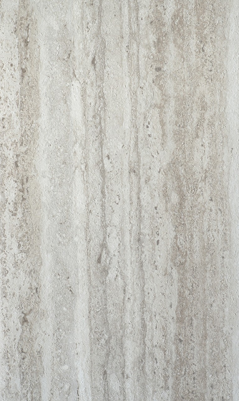 Ten dekor przypomina delikatnie obrobiony trawertyn w jasnobeżowym odcieniu z subtelnym kamiennym akcentem. Wygląda czysto i naturalnie, dzięki czemu świetnie sprawdza się jako powierzchnia wielkoformatowa.