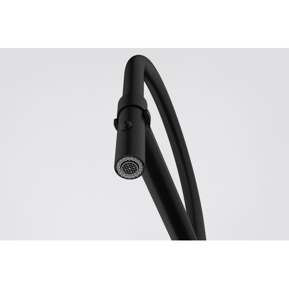 Samodzielna bateria zlewozmywakowa, czarny matowy (spray), wysokość 456 mm, perlator na sprężynie z przełącznikiem prysznicowym, otwór 35 mm, obrót o 360°. Kompletne akcesoria do montażu stanowią część baterii. Nie ma potrzeby kupowania czegokolwiek. 115.0690.598