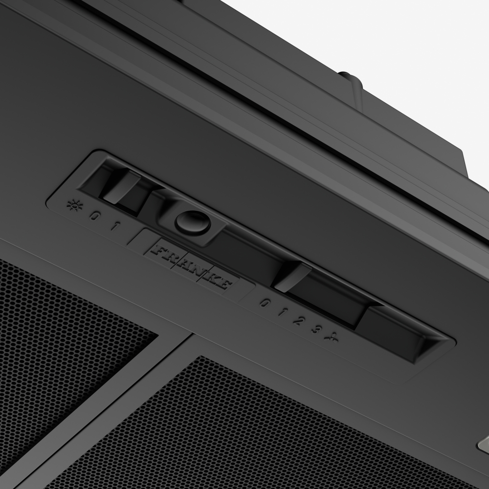 Wbudowany okap Box Smart. Projekt czarny. Klasa energetyczna D. Przełączniki suwakowe. 3 poziomy mocy. Uwaga: cena bez opłaty recyklingowej. 305.0689.925