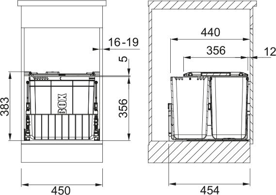 Součástí koše je plnovýsuv s tlumením,které zaručuje tichý dojezd.
