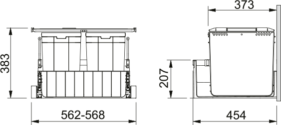 Součástí koše je plnovýsuv s tlumením,které zaručuje tichý dojezd.