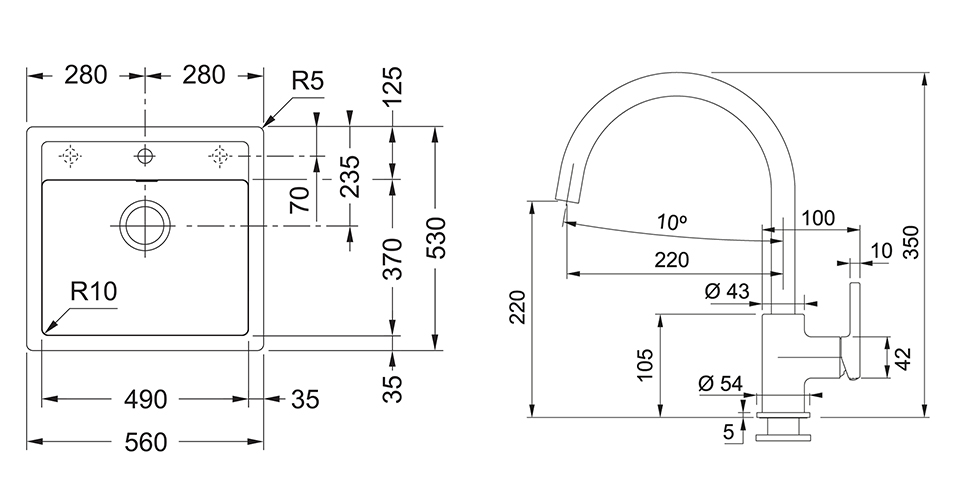 Zestaw Franke Tectonite T122F (zlew SID 610 czarny + bateria FC 6018.901)