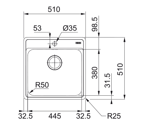 FRANKE Zlew BCX 610-51 510 x 510 stal nierdzewna