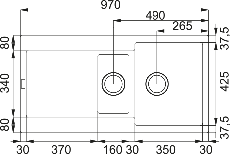 Sinks: 350 × 425 × 200 mm