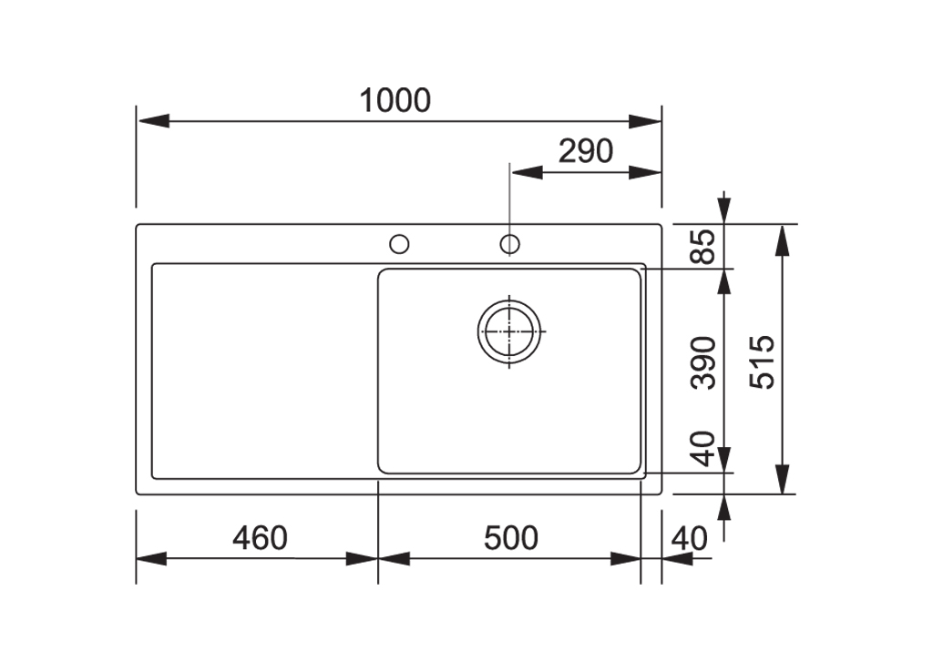 Cutout: 980 × 495 mm (Radius 10 mm)< br> Sink: 500 x 390 x 200 mm
