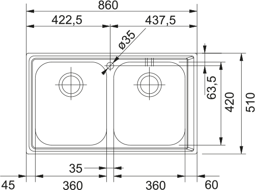 Dřezy: 2 × 360 × 420 × 200 mm
