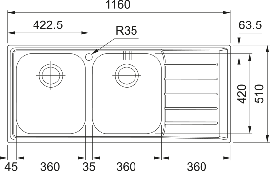 FRANKE Zlewozmywak NEX 621/2P 1160 x 510 3 1/2