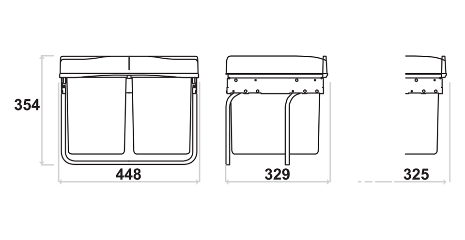 Sorter z trzema pojemnikami 1 x 15l + 2 x 7,5l do szerokości szafki 500 mm.