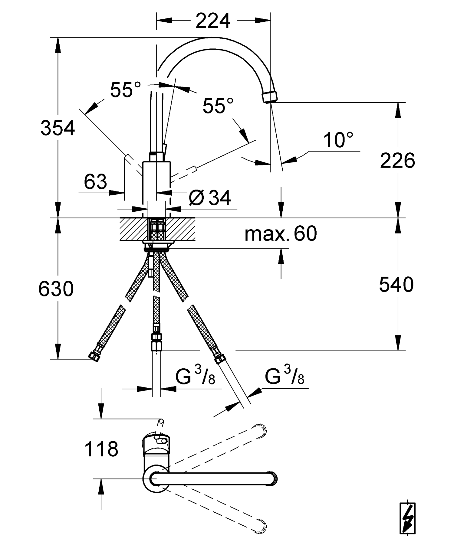 Jeśli szukasz baterii kuchennej do użytku z podgrzewaczem przepływowym, ta bateria niskociśnieniowa z serii Concetto jest idealnym wyborem. Zawiera wymagane fabrycznie trzy otwory na podgrzewacz przepływowy, więc podłączenie akumulatora będzie kwestią czasu dzięki naszemu łatwemu systemowi instalacji. Dzięki wysokiemu wylotowi i regulowanemu zakresowi obrotu 0°, 150° lub 360° zyskujesz większą swobodę ruchów i elastyczność podczas gotowania i sprzątania. Dzięki minimalistycznemu wyglądowi, zakrzywionej wylewce i wspaniałemu chromowanemu wykończeniu GROHE StarLight ta bateria zlewozmywakowa będzie fantastycznym dodatkiem do Twojej kuchni.