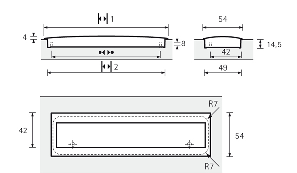 Uchwyt wpuszczany MISNIA długość 180 mm, rozstaw wiercenia 160 mm. Kolor: aluminium.