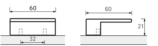Uchwyt VENUSIA długość 60 mm, rozstaw wiercenia 32 mm. Kolor: stal nierdzewna.