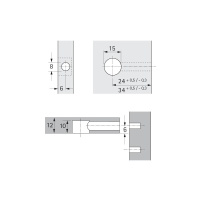Dzięki specjalnej konstrukcji dociągu, można dociągnąć boki korpusu do bocznej płaszczyzny wieńca z odległości do 4 mm Podwójne zabezpieczenie dzięki karbowaniu zewnętrznej i wewnętrznej powierzchni mimośrodu - trzpień dociągany jest zawsze centrycznie, przez co przesuwanie się elementów meblowych zostało wyeliminowane! Mimośród można dociągać wkrętakiem płaskim, krzyżakowym PZ 3 lub kluczem imbusowym SW 4 Z kołnierzem i bez kołnierza, kołnierz przykrywa wyrwania powstałe przy wierceniu, zaślepka nie jest wówczas konieczna