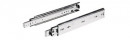 Prowadnica kulkowa pełnego wysuwu z uskokiem do drewnianej szuflady. Szerokość zabudowy 19 mm. Obciążenie 90 kg. Z blokadą i zabezpieczeniem przed niezamierzonym wysunięciem. Za pomocą dźwigni można rozdzielić szufladę i łatwo wyjąć ją z korpusu.
