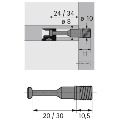 Kołek szybkiego montażu do Rastex 15. Tuleja dystansowa do średnicy 10 mm. Rozmiar montażowy 20 mm. Stal / plastik zielony.