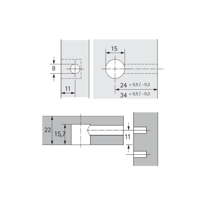 Mimośrodowe okucie łączące Rastex 15. Do grubości 22 mm. Z kołnierzem, odlew cynkowy.