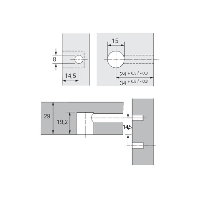 Mimośrodowe okucie łączące Rastex 15. Do grubości 29 mm. Bez kołnierza. Odlew cynkowy.