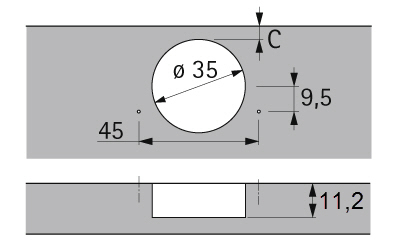Při odstupu vrtání misky 3,0mm je nutno použít podložku D=1,5mm. Při odstupu vrtání misky 4,5mm je nutno použít podložku D=0mm.