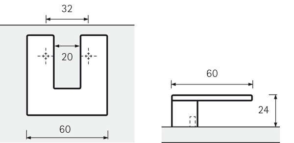 Uchwyt VIGILIA długość 60 mm, rozstaw wiercenia 32 mm. Kolor: stal nierdzewna.