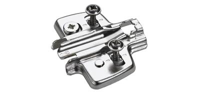 Podkład montażowy do zawiasów Sensys i Intermat Hettich Top z ekscentrycznym ustawieniem wysokości ± 2 mm. Grubość boku od 15 mm. Rozstaw otworów 32 mm. Z wstępnie zamontowanymi specjalnymi wkrętami i plastikowymi tulejami do wiercenia d=5x12 mm. Stal niklowana.