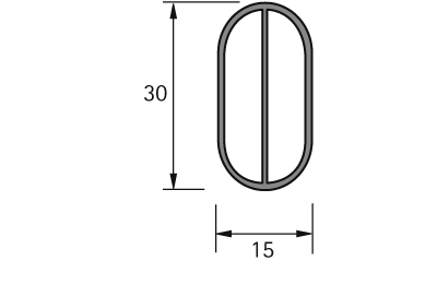 Owalny drążek meblowy, rozmiar 3000 x 30 x 15 mm.