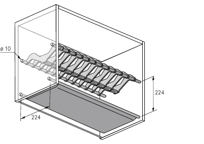 Głębokość 224 mm, do 20 talerzy. Komplet zawiera: 1 kratkę ociekarkę do talerzy, 1 kratkę ociekarkę wraz z miseczką. Stal nierdzewna chromatowana.