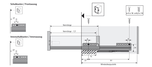 HETTICH 9193546 QUADRO 25 420MM EB 9,5 SILENT