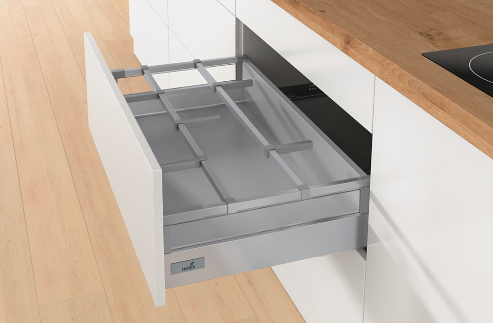 Wewnętrzne wyposażenie szuflady ArciTech Atira. Przeznaczone do korpusów o standardowej szerokości.