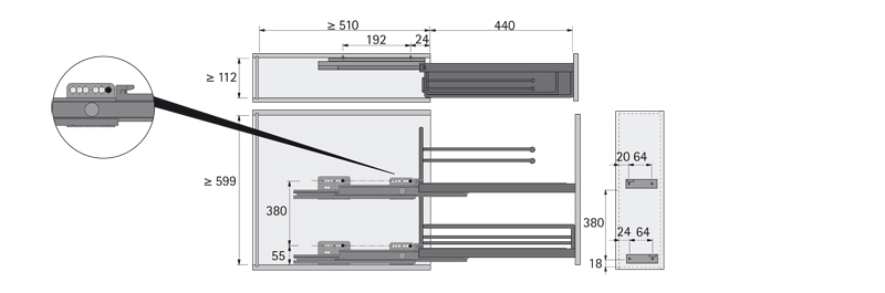 HETTICH 9207581 Szuflada zwieszakiem ARENA CLASSIC 90°, chrom