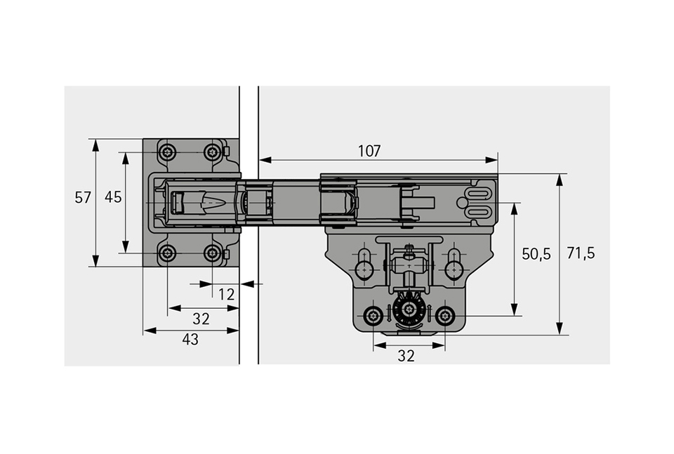 Do korpusów o grubości 16/18/19 mm, głębokość zabudowy 41,5 mm.