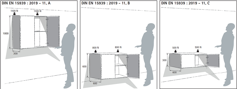 - 110 kg/szt. w ramie testowej A (wysokość korpusu = 1000 mm / głębokość korpusu = 300 mm)