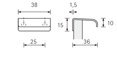 Uchwyt EMPOLI długość 38 mm, rozstaw wiercenia 25 mm. Kolor: stal nierdzewna.