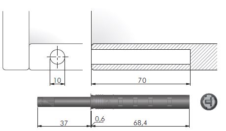 K-push do otwierania bez uchwytów. Bardzo mocny. Długość wysunięcia tłoka 37,2 mm. Wiercenie 82mm, śr. 10mm. Zestaw zawierający odpowiedniki do tłoczenia lub klejenia oraz instrukcję montażu.