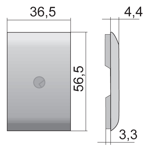 Wspólna zaślepka do wszystkich rodzajów okuć regulowanych LIBRA. Zakrywa obydwa otwory śr.30- Plastik, kolor szary. Rozmiary 56,5x36,5.