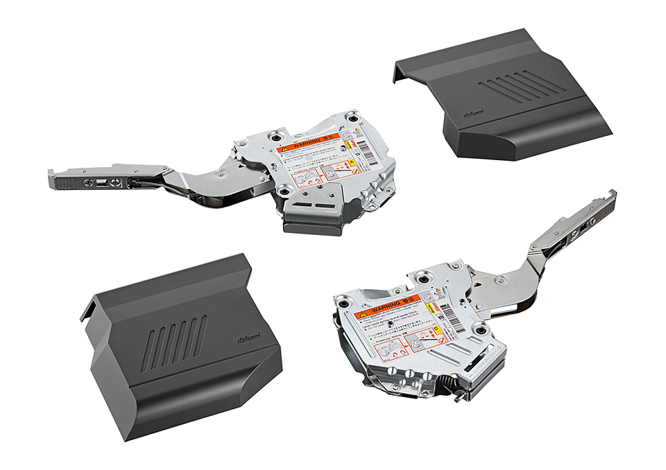 W zestawie: 2x podnośnik, zaślepka L+P oraz instrukcja montażu. Należy również zamówić 2x 203387 dla frontu drewnianego lub szerokiego aluminiowego lub P13907 + P13908 dla frontu cienkiego aluminiowego. Konieczne jest również dodanie tłoka TipOn lub z adapterem.