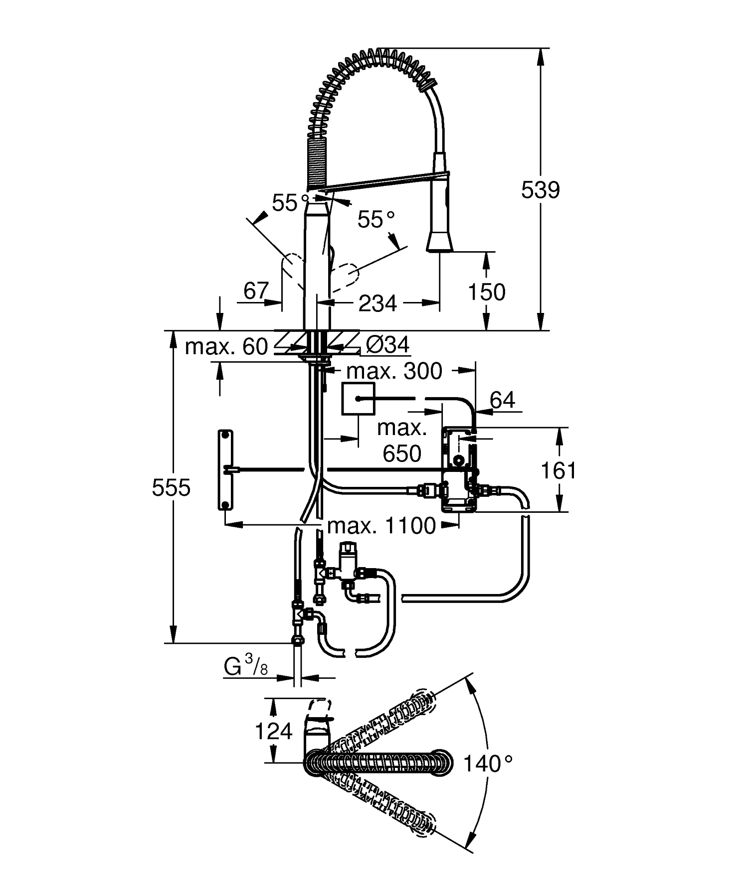 Bateria zlewozmywakowa GROHE 31379DC0 K7 z profesjonalnym prysznicem, SuperSteel | 410430 | 1 szt |