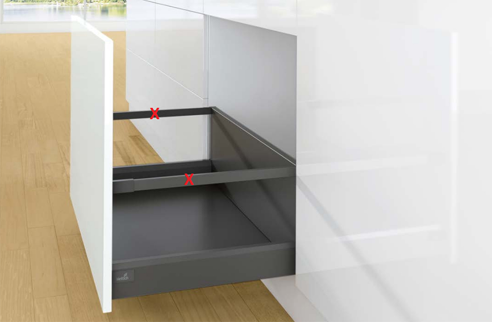 Okucia do szuflady frontowej ArciTech w kolorze antracyt, głębokość 300 mm, wysokość boku 94 mm, wysokość całkowita 282 mm, nośność 40 kg, tłumienie SiSy. Zestaw zawiera 1 parę paneli bocznych, 2 szt. okuć przednich (dybel), 2 szt. osłon Hettich, 2 szt. uchwytów tylnych 282mm. Szufladę należy uzupełnić o relingi lub TopSide lub DesignSide. W celu bezuchwytowego otwierania P2OS konieczne jest dodanie odpowiedniego modułu P2O, w przypadku gdy szuflada jest szersza niż 600 mm należy dodać pręt synchronizujący (318279) skracanie = szerokość wewnętrzna korpusu-2xEB-207.