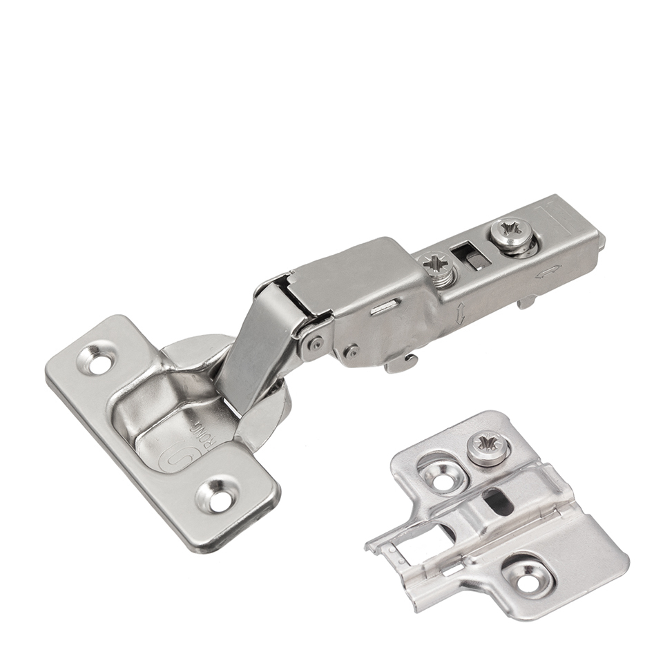 Kompletny zestaw zawiasu S3 z płytką montażową. Kąt otwarcia 110°, mocowanie puszki na wkręt oraz mimośrodowa regulacja głębokości.
