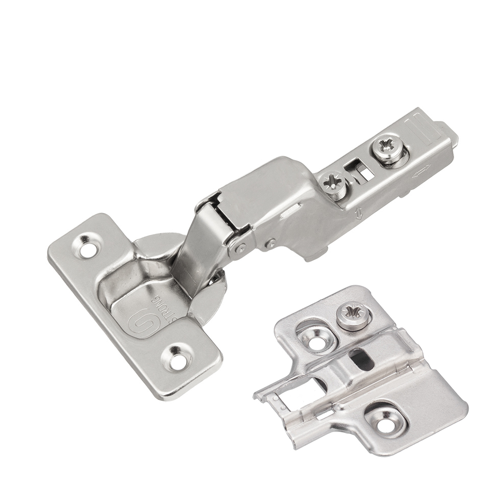 Kompletny zestaw zawiasu S3 z płytką montażową. Kąt otwarcia 110°, mocowanie puszki na wkręt oraz mimośrodowa regulacja głębokości.