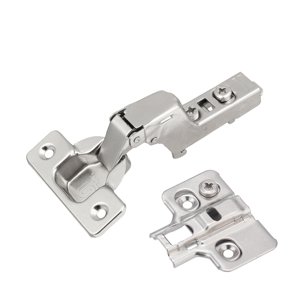 Kompletny zestaw zawiasu S3 z płytką montażową. Kąt otwarcia 110°, mocowanie puszki na wkręt oraz mimośrodowa regulacja głębokości.
